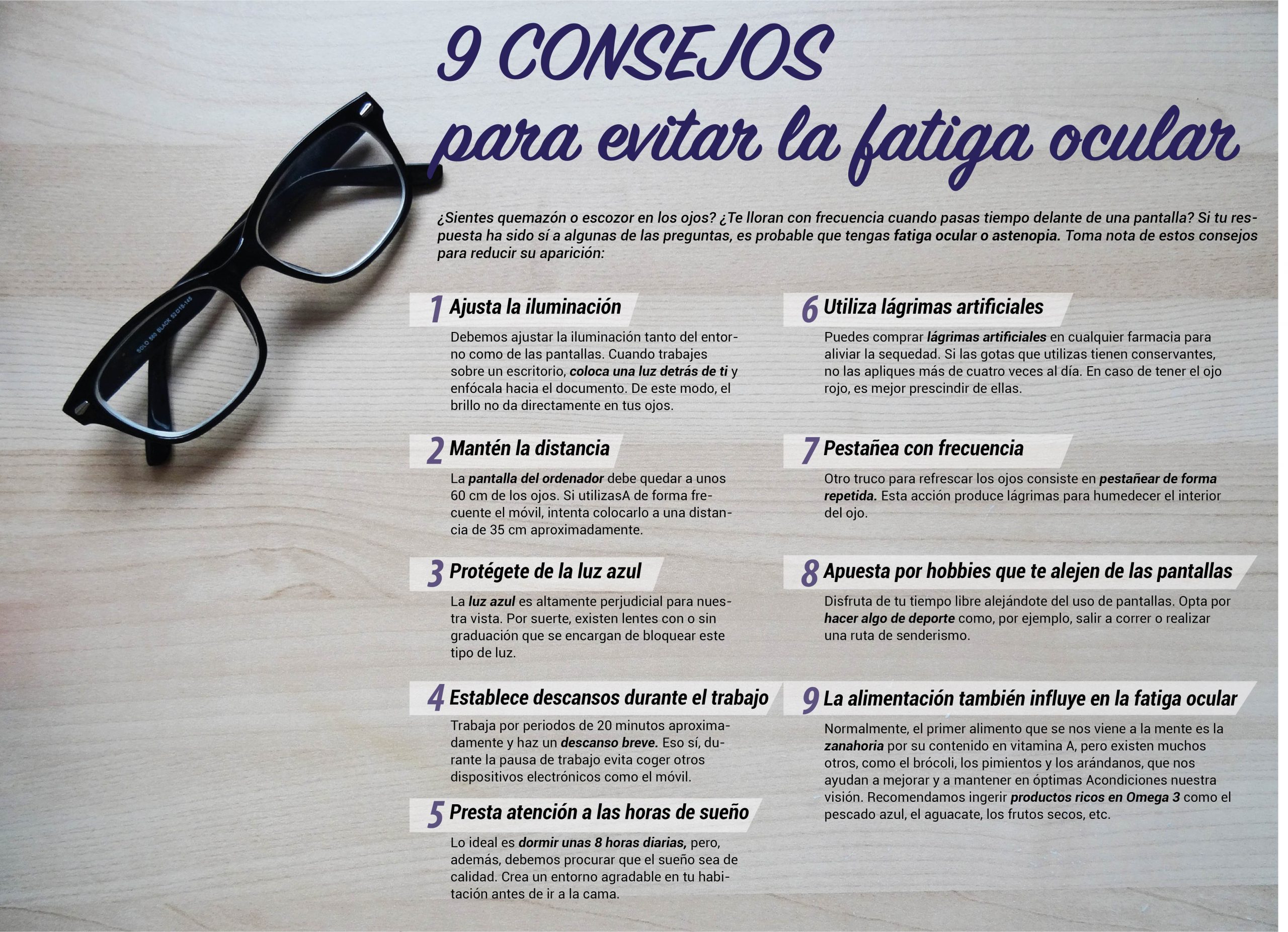 9 Consejos para evitar la fatiga ocular 9 Consejos para evitar la fatiga ocular Por Equipo Wellat|2022-01-18T20:26:38+01:00enero 14th, 2022|Descubre|Sin comentarios Share This Story, Choose Your Platform! FacebookLinkedInWhatsAppCorreo electrónico