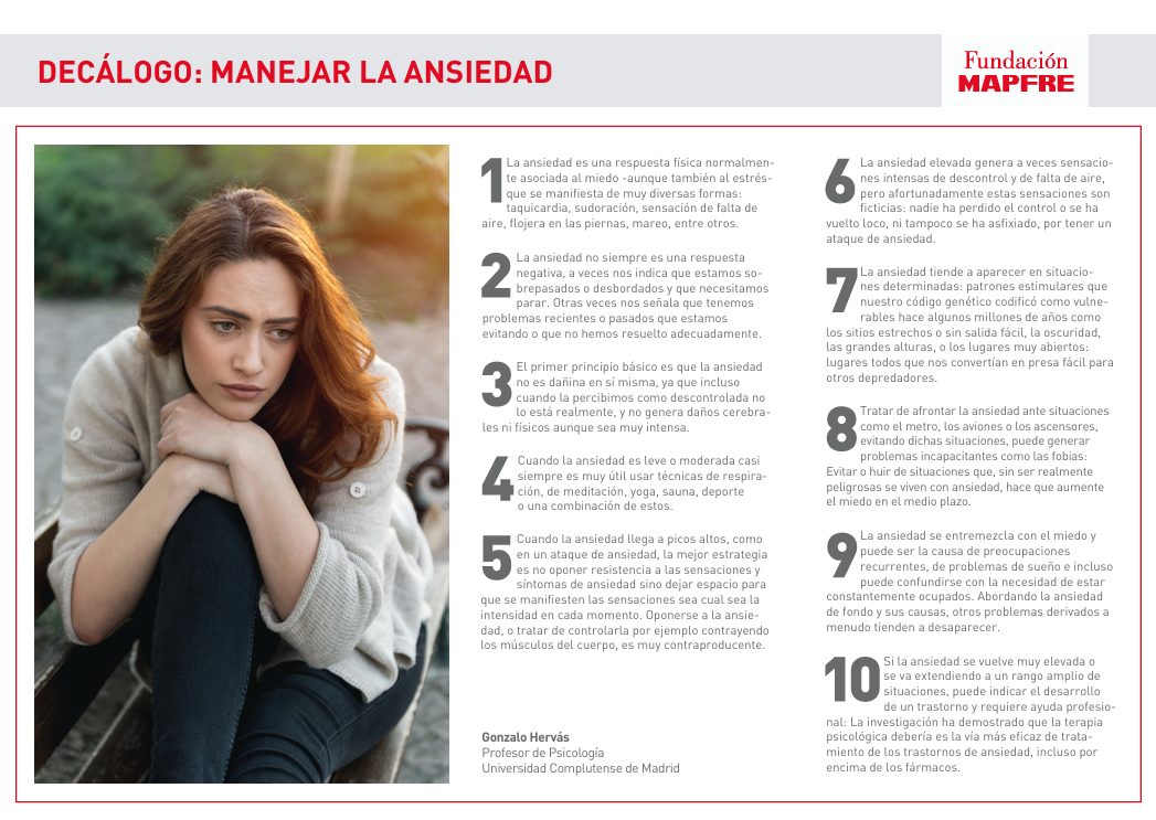 DECÁLOGO: MANEJAR LA ANSIEDAD AUTOR: Contenido de Fundación MAPFRE.