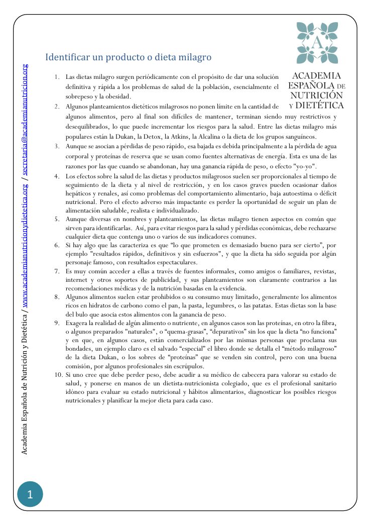 Identificar un producto o dieta milagro AUTOR: Contenido de Fundación MAPFRE.